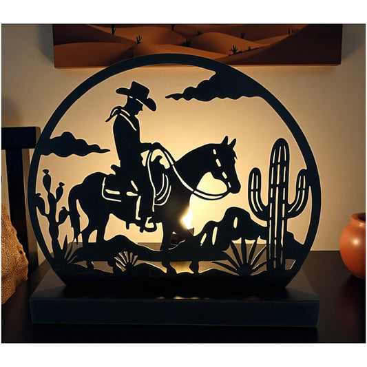 Cowboy Rider & Cactus Western Table Night Light