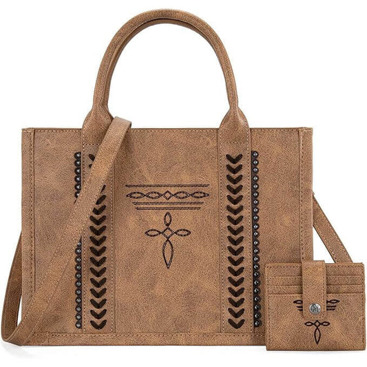 Whipstitch Western Top Handle Tote Bag with Card Wallet