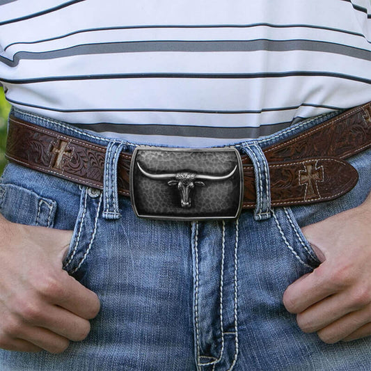 Leather Turquoise & Brown Steer Head Belt Buckle