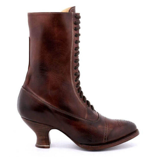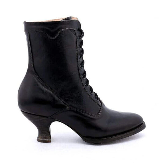 Shoes were usually handmade in the cobbler’s shop, with nails or pegs used to bind the sole to the upper. As usual, women’s legs were never shown and feet were only glimpsed once in a while when sitting down so stockings and hose weren’t high up on the fashion must haves. Women's shoes had thick heels and pointed toes. They might slip on, button or lace and come above or below the ankle. Our selection below has many traits of the common shoes found on ladies walking the dusty streets of the old west.