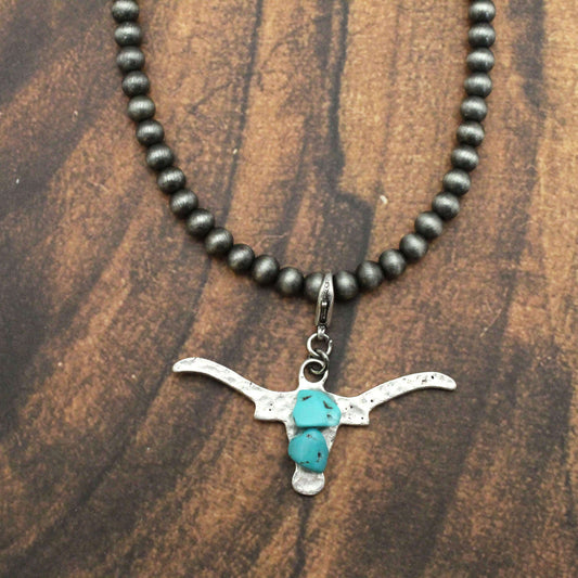 Navajo Pearl Western Skull & Cowboy Boot Necklace