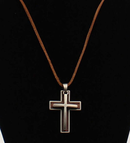 Leather Inlay Cross Necklace