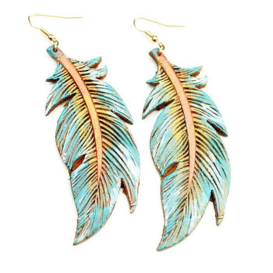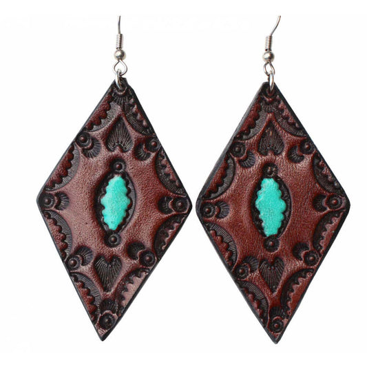Cream Leather Fringe Earrings with Turquoise Chunks