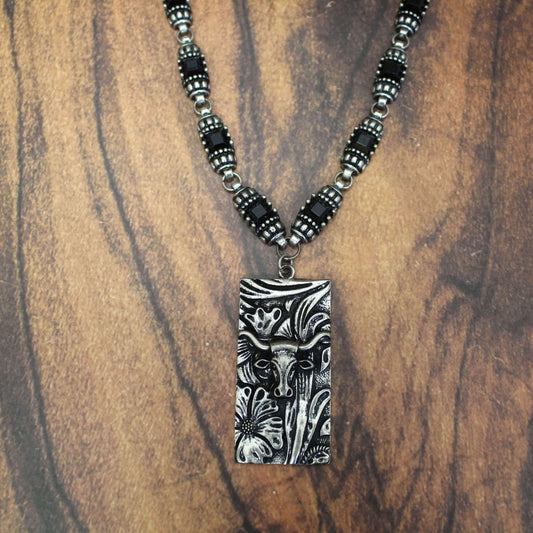 Steer Head & Fringe Ladies Boho Cowgirl Necklace