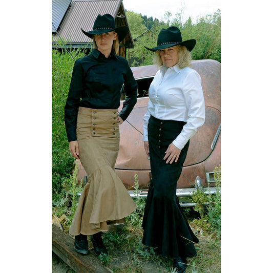 Our line of Ladies Western Skirts consist of old west silhouettes derived from modern day western style. Whether it is a long western skirt you're looking to reminisce the yester years in or a fun flirty skirt to go with your cowgirl boots Cattle Kate designs them all.