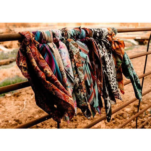 The bandana, kerchief, wild rag, wipes or otherwise known as scarves were something a cowboy could not live without in the old west. It came in handy for many uses such as a dusk mask, earmuffs, sun protection, pot holder, injury sling or even a mask for robbing the stage.