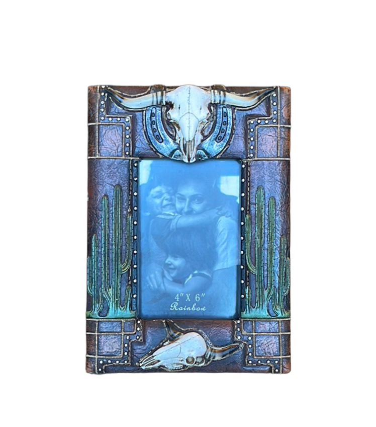 Showcase your love of the cowboy lifestyle by displaying your favorite western photo in this one-of-a-kind frame. The intricate longhorn and cactus etchings will add a touch of rugged desert flair to any room. Holds one 4x6 photo to proudly display your favorite western-themed memory.