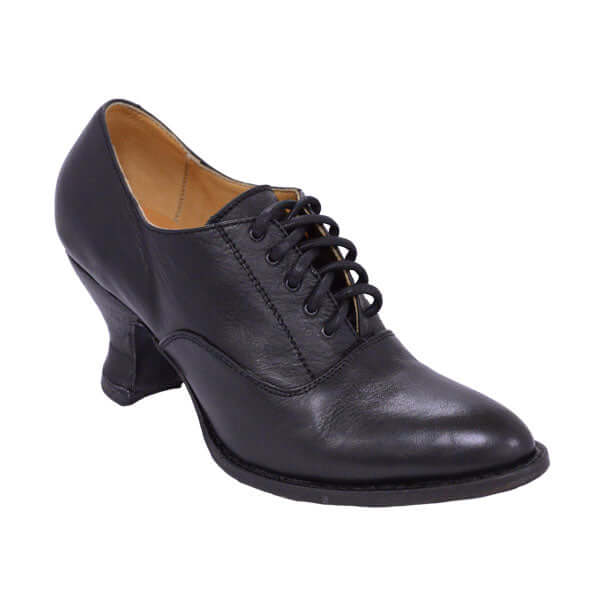 In the 1860s, heels as fashion became popular again, and the invention of the sewing machine allowed greater variety in high heels. Dainty lace-up and button shoes peeked demurely from under long skirts. These Calamity Jane shoes are a classic feminine style that is still very in style today. Available in three colors, please allow 4 days to ship. Size 6 to 11 expect for 10-1/2.