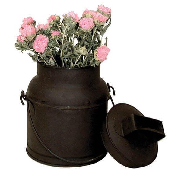 Old Style dairy can great for decoration as is or dries flowers. Botanicals are not included. Our metal-ware is not recommended for use with unwrapped food. 8" wide and 9" high.