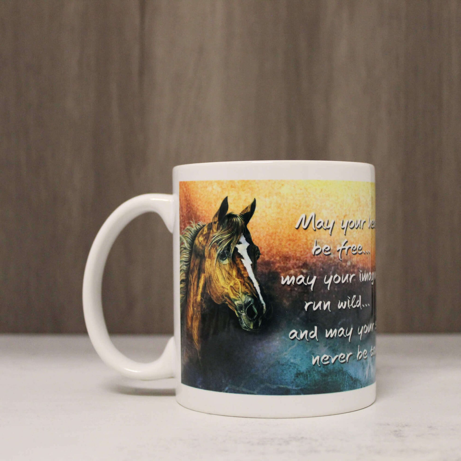 Delightful horse art captured on this colorful Western coffee mug. This 12-oz ceramic mug come with sturdy box making them ideal for gift giving. All are dishwasher safe, too!