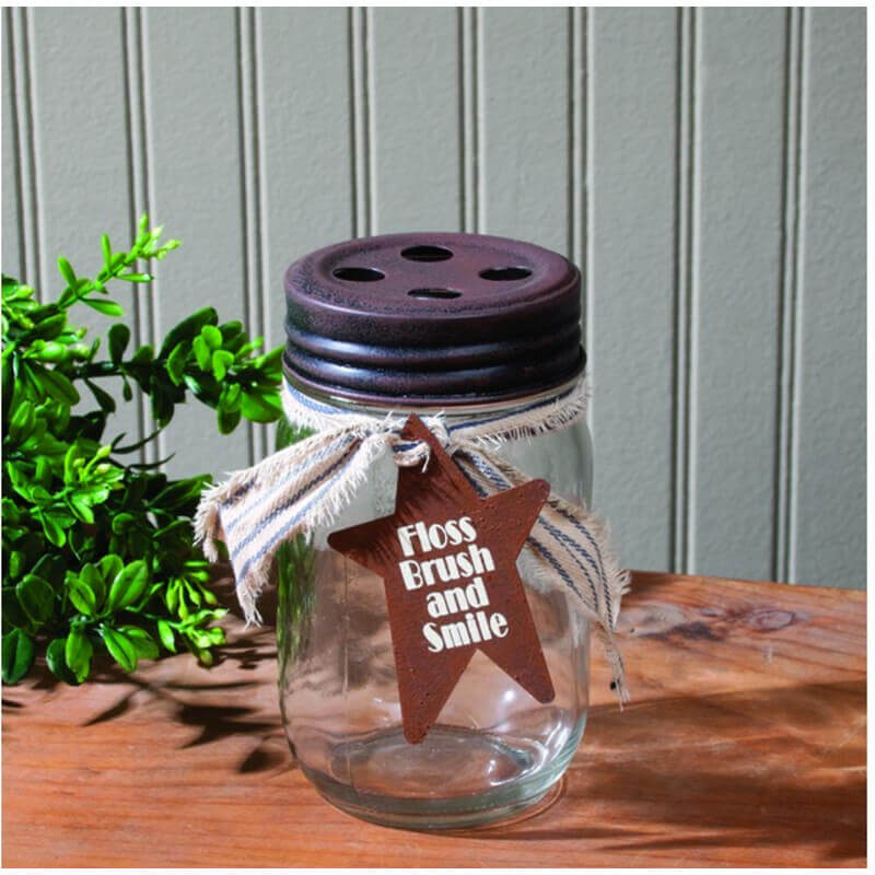 With the Classic Country Mason Jar Toothbrush Holder, you will be able to have an all in one toothbrush holder that decorates the bathroom and holds your toothbrushes. Adds a great country look to your bathroom.