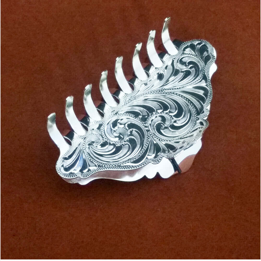 Use one of these beautiful German Silver plated Hair Accessories to accent your up do! Classy and stylish, these are the perfect accent to dress up your hair. Choose from the hair clip (3-1/2"L X 2"H) or the Hair Stick (4"L X 2"W).