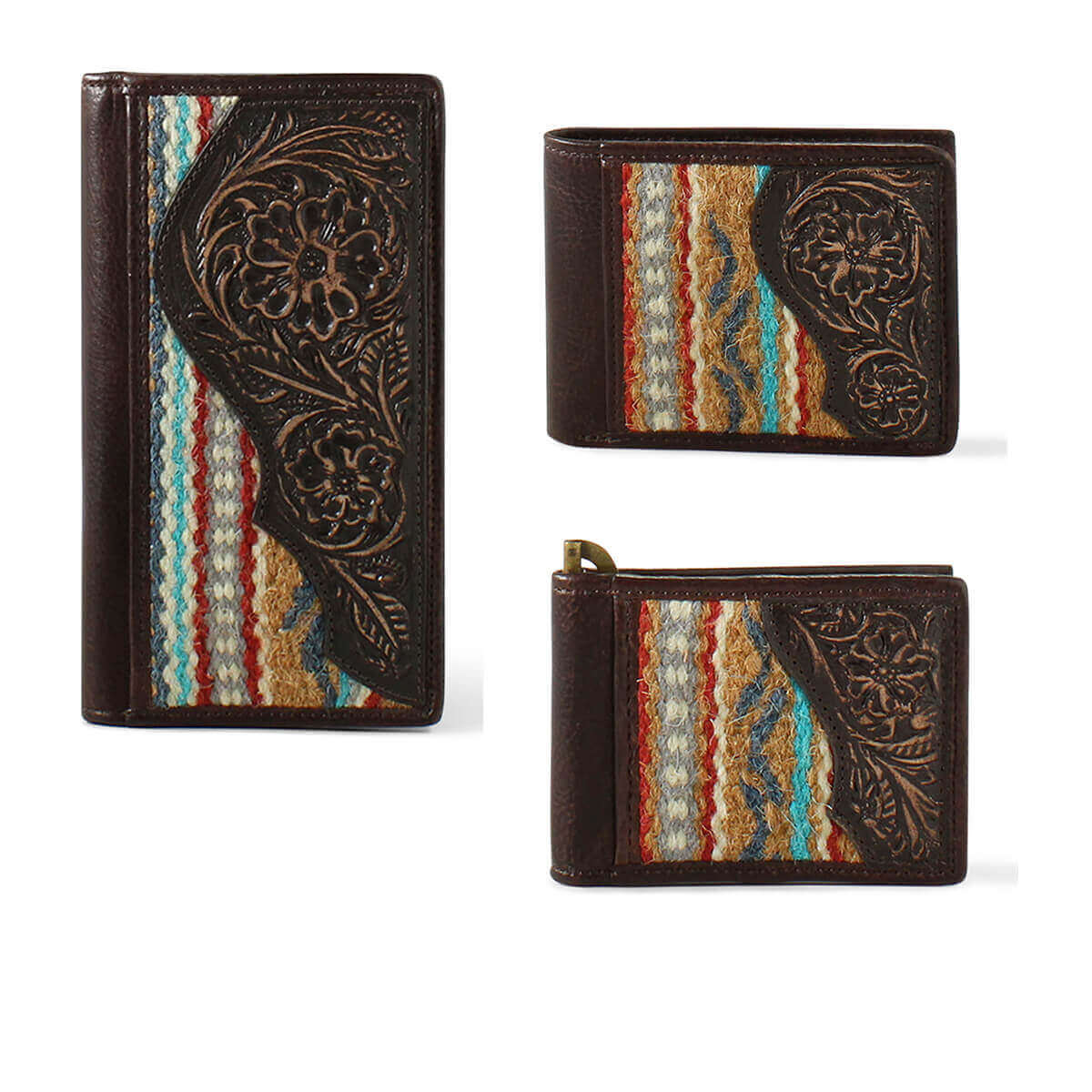 The Tooled Leather and Wool Wallet is perfect for the modern man who appreciates quality craftsmanship and timeless Western style. This wallet doesn't just look great - it's built to last. Made in India