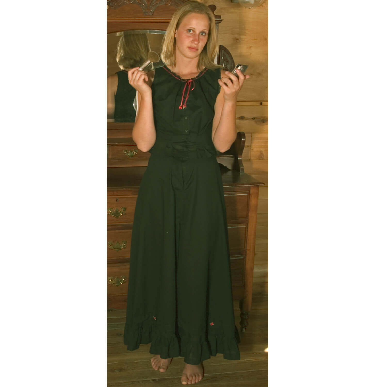 Add a touch of frill as you kick up your heels. These pantaloons can be worn with any Cattle Kate skirt, dress or outfit. It is the perfect split petticoat for our riding skirts. Get some western flair in your undergarments with Cattle Kate's pantaloons. Trimmed in old-fashioned tucks, ruffles and dainty rosettes with an elastic waistband in back and button in the front. Made from 100% fine cotton batiste. Made in USA