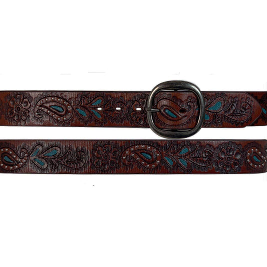 Black & Tan Embossed Western Belt